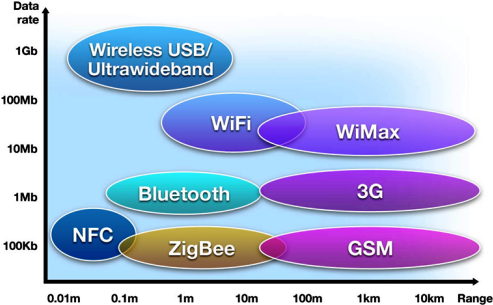 از میان ارتباطات رادیویی موجود در تلفنهای هوشمند،NFC و بلوتوث بُرد کوتاهتری دارند. اولی در حد چند سانتیمتر و دومی تا چند متر. NFC برای پرداختهای الکترونیکی بهتر است و بلوتوث برای انتقال فایلها. فرکانس کاریNFC معادل 13.56 مگاهرتز است که نسبت به بلوتوث با فرکانس 2.5 تا 2.5 گیگاهرتز خیلی کمتر است.